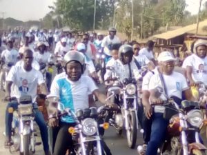 Partie du Lycée d’Agbelouvé, la caravane a sillonné artères de la commune avant de chuter à la place publique du chef canton, où M. Dzene s’est félicité de la mobilisation.