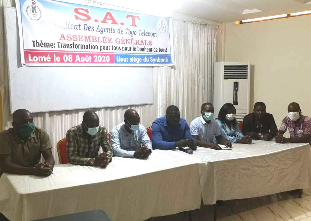 ©Newsoftogo-(Lomé, le 11 août 2020)-Il y a longtemps qu’il devait se prêter à l’exercice mais certains évènements ont eu raison de cette organisation. Pour ne pas tomber dans la léthargie et perdre la sève de la lutte ouvrière, les responsables du Syndicat des agents de Togo Télécom (SAT) ont enfin tenu l’Assemblée Générale de leur organisation samedi 8 août 2020 à Lomé autour du thème : « Transformation pour tous, pour le bonheur de tous ». A l’issue de cette Assemblée Générale, l’instance dirigeante a été renouvelée. Célestin Balakinèbawi TELOU prend désormais les commandes du SAT en remplacement du camarade Aminou Mouhamed BACHAROU. Le nouveau bureau exécutif composé de neuf (9) membres promet une « amélioration des conditions de vie » et de « la productivité », un des objectifs fixé par la novelle direction générale.