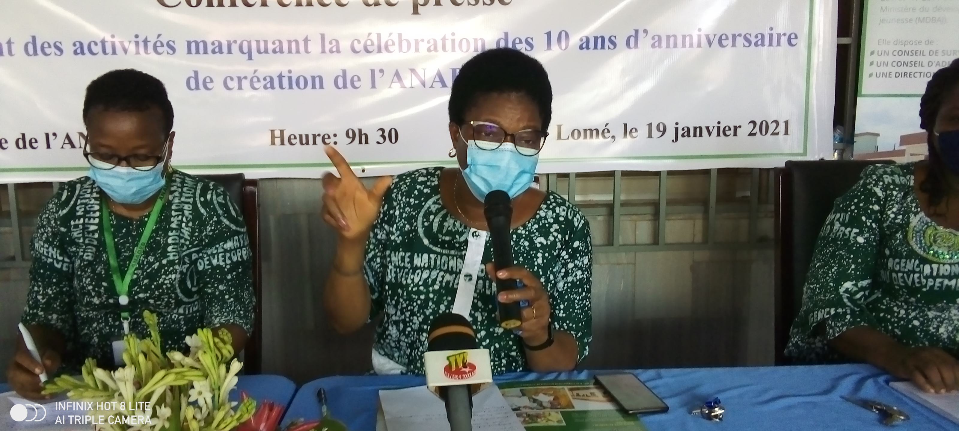 ©Newsoftogo-(Lomé, le 20 janvier 2021)-Dix (10) ans dans la vie de l’Agence nationale d’appui au développement à la base (ANADEB), ça se fête. Les activités marquant la célébration ce jubilé d’étain ont été lancées ce mardi 19 janvier 2021 à son siège à Lomé au travers d’une conférence de presse. Occasion pour la Directrice Générale de cette agence, Mazalo Katanga et ses collaborateurs de présenter le bilan de leurs activités des dix (10) ans d’existence et se projeter vers l’avenir.