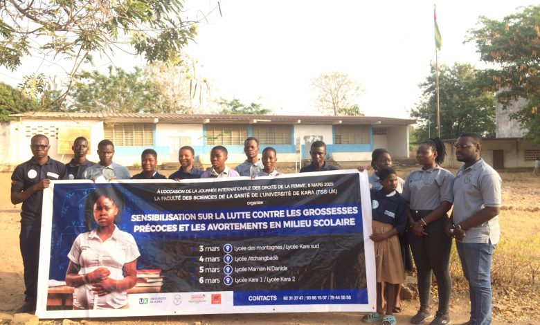 ©Newsoftogo-(Kara, le 12 mars 2025)-La Faculté des sciences de la santé de l’Université de Kara (FSS-UK) a mis du 03 au 06 mars 2025 l’avenir de la jeune fille au centre des activités prévues pour la journée mondiale de la femme en vue d’accompagner les jeunes filles dans le succès de leur parcours scolaire. Pilotées par les doctorants de ladite Faculté, ces tournées de sensibilisation ont porté principalement sur les causes liées aux grossesses précoces, aux avortements en milieu scolaire et les moyens de lutte contre ce danger.
