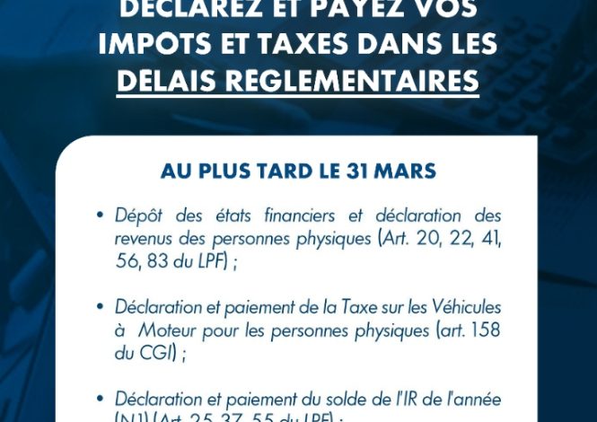 Déclaration des résultats imposables : Des délais à respecter (Article 49 du LPF)