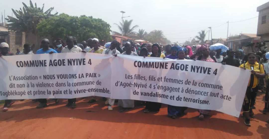 « C’est pourquoi nous population d’Agoè-Nyivé 4 de concert avec l’association « Nous voulons la paix », prenons l’engagement solennel de plus ne participer ou faciliter la violence telle qu’elle soit et d’où qu’elle vienne. Toute la population d’Agoè-Nyivé 4 s’est mobilisée autour de nous pour qu’ensemble, nous disions non à la violence, aux actes de vandalisme fragilisant le vivre et la cohésion sociale », a déclaré Mme Ouro Sama, Porte parole de la jeunesse d’Agoè-Nyivé 4.