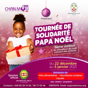 La « Tournée de solidarité Papa Noël » sera itinérante et va sillonner les écoles maternelles et primaires du Grand Lomé au cours de laquelle vivres et non vivres, jouets, fournitures scolaires, seront distribués aux enfants démunis. Elle prendra fin le 5 janvier 2021.
